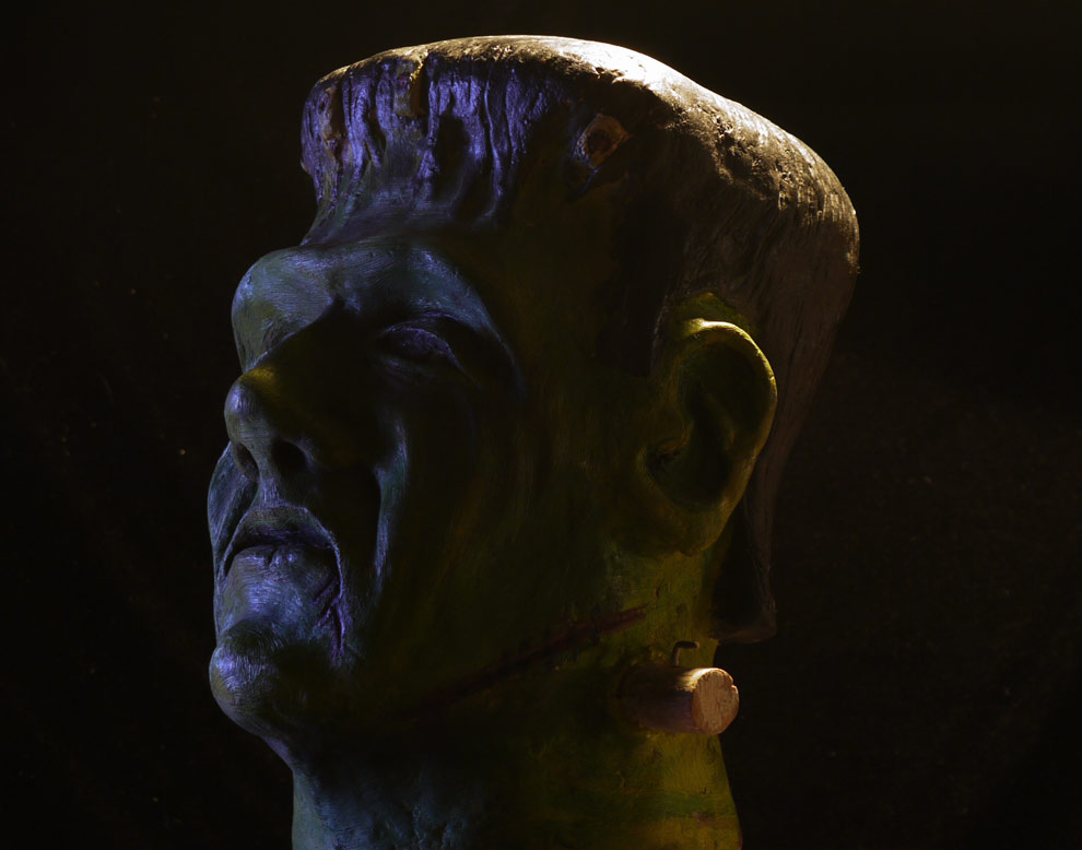 Then, after a visit to the art store, where I picked up several pounds of Plasticine, I set about sculpting the Head of Frankenstein. A photograph of the famous Monster proved to be hard to find. Famous Monsters of Filmland Magazine didn’t exist, yet, and Universal Studios made sure all images were scarce. They didn’t want the monster's face to become commonplace. Maybe that’s why it remained so scary. To get a glimpse of it, movie goers had to pay.