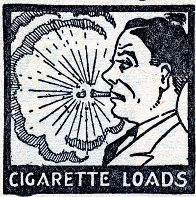 Then there were the standards, Joy Buzzers, a package of fake Chewing Gum with a label that proclaimed it had a “Snappy Flavor”, and if somebody took a piece, a hidden mouse trap snapped their finger, Hot Toothpicks, Stink Bombs, Dribble Glasses, Exploding Matches, Itching Powder, and a whole arsenal of “Whoopee Cushions.” There were also the ever popular Cigarette Loads. These came in two variations, both were little sticks of chemical soaked wood to insert into the tip of a victim’s cigarette. One merely made it smell bad, the other strove to create an explosion. Of course, at one time or another, I had almost all of the above, all except for the cigarette load that exploded, but I had the other, and my mother didn’t even notice the bad odor.