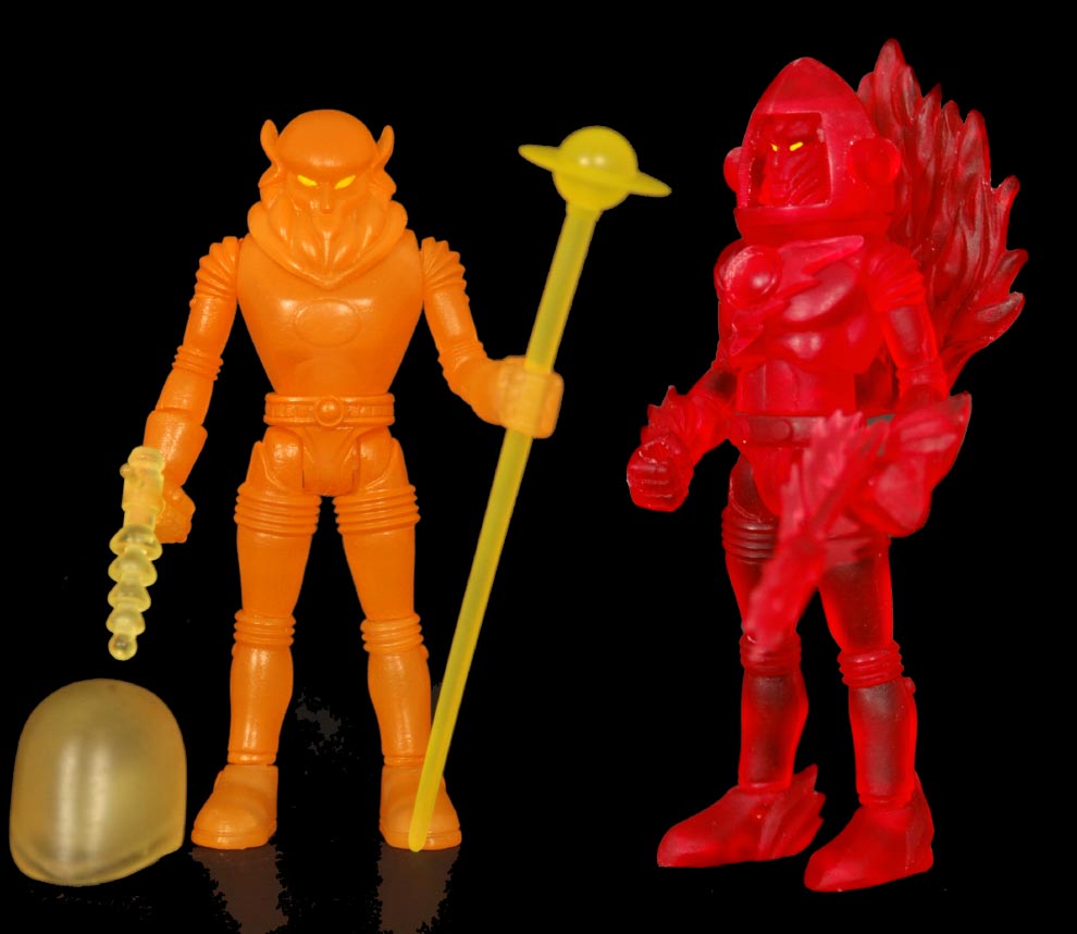 "OSM Alpha Phase wave 2 contains a translucent red Inferno, the Flame Man of Mercury (with translucent red accessories), and a translucent orange Xodiac, the Man from Saturn (with clear yellow helmet and accessories), and will also sell as a set for a mere $20.00!"