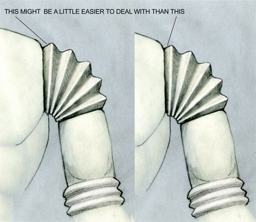 Here are a group of odd images, and a few overlays that will convey a feeling of the back and forth that went on in the process. I was a pain in the butt, most of the time. But, nonetheless, every once in a while, an overlay resulted in improvement. Move your mouse over the image below to look beneath the overlay and see the head before corrections were made. The corrected head is on the right.