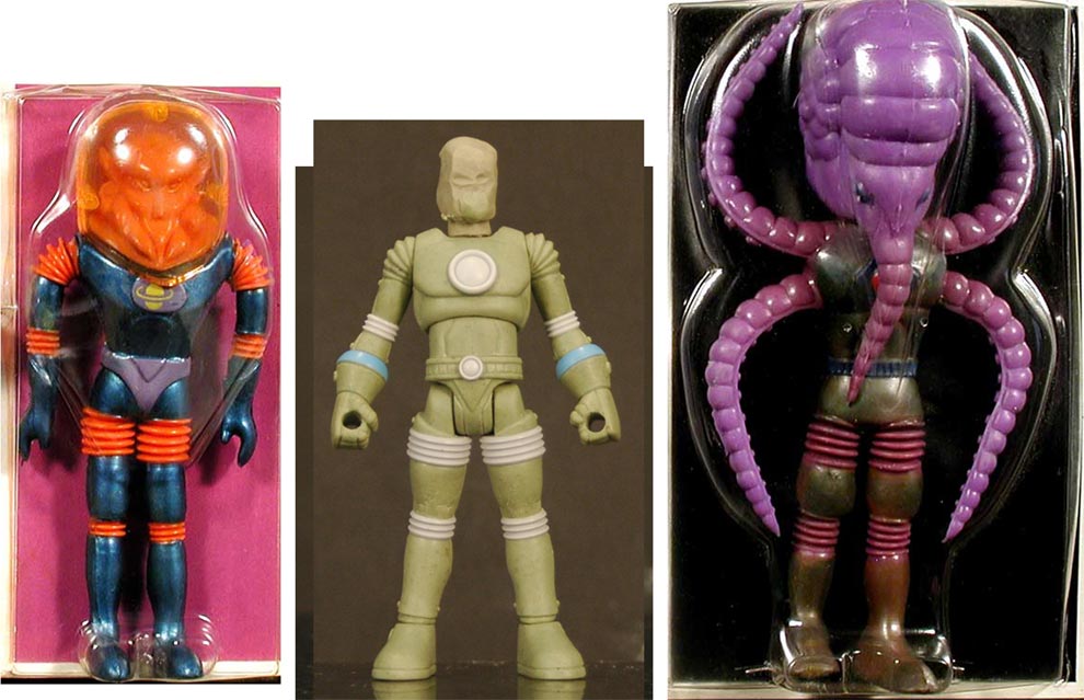 Even though they sent this photo showing the comparative size of the new Outer Space Men, it didn’t quite sink in with me.