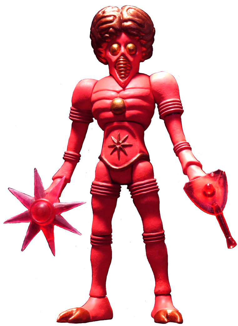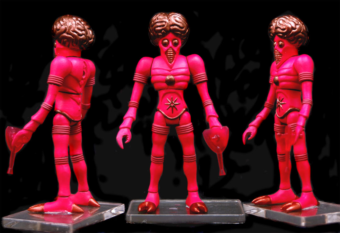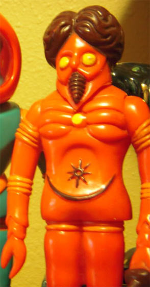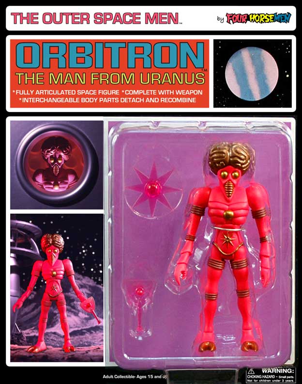 As the photos above display, the finished ORBITRON was going to be Great! Alas, when I first saw him in photos shot at SDCC, I did not feel that way. In the official 4H photo (center) I liked him even less. He even reminded me of those hilariously funky Bullmark figures, which, by the way, were complete Knock Offs, in spite of what some jerk on Wikipedia says. He must have invested in a set!