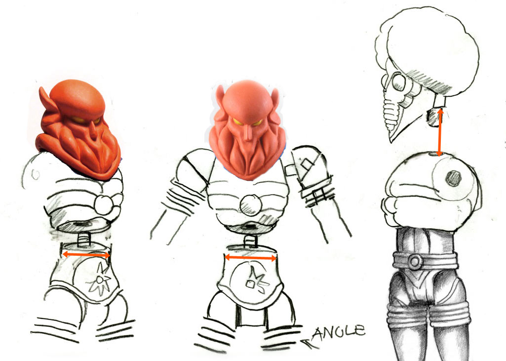 In my haste yesterday, I quickly whipped a plug in, without thinking. Looking at the emails again today I realized the mistake. I imagine you would notice this, but I am sending a correction just in case. It has to do with the placement of the plug and socket on Orbitron’s head and chest/shoulders. I showed it incorrectly on the angle of his chest. It should actually be higher up below his neck. Not that his head can be used on any other bodies, nonetheless by moving the plug and hole up higher, where a “normal” neck would be, other heads could be at least used on his body.