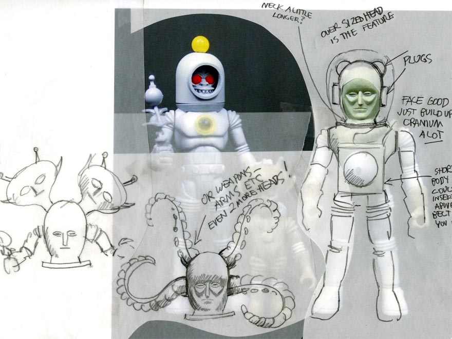 Electron + was first revealed to the public, in February 2011, at Toypocalypse, the Four Horsemen’s retrospective four-man show. The photos below were shot by various visitors to that exhibition. I love Electron's electrifying staff: don’t you? That was a nice surprise! If you click on the photos below, a link will take you to the original blog or review. Below the photos is the latest update from the Four Horsemen in person.