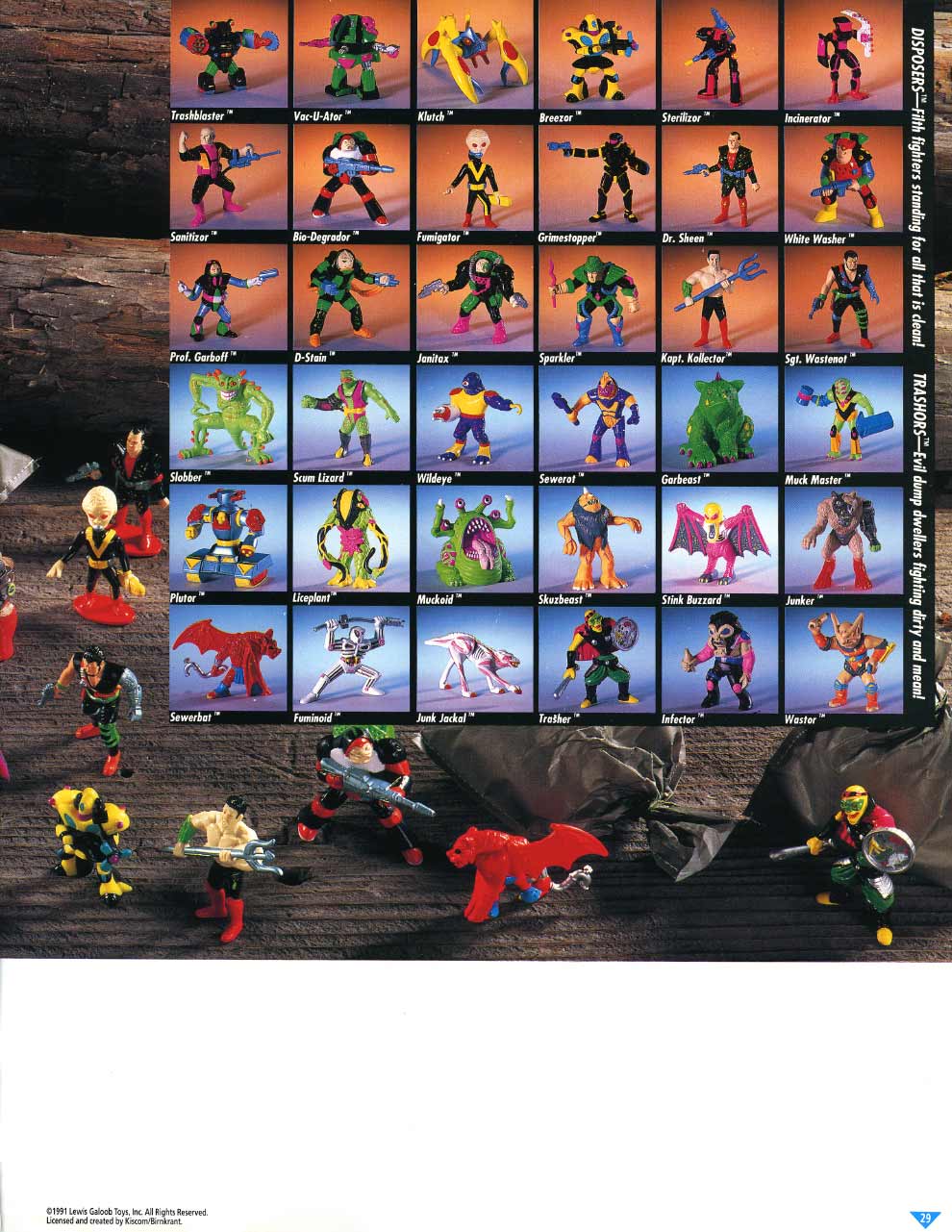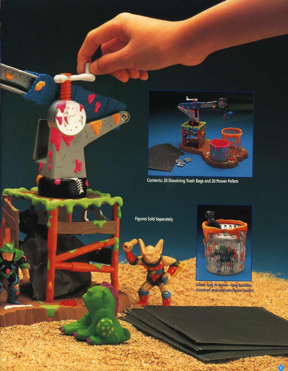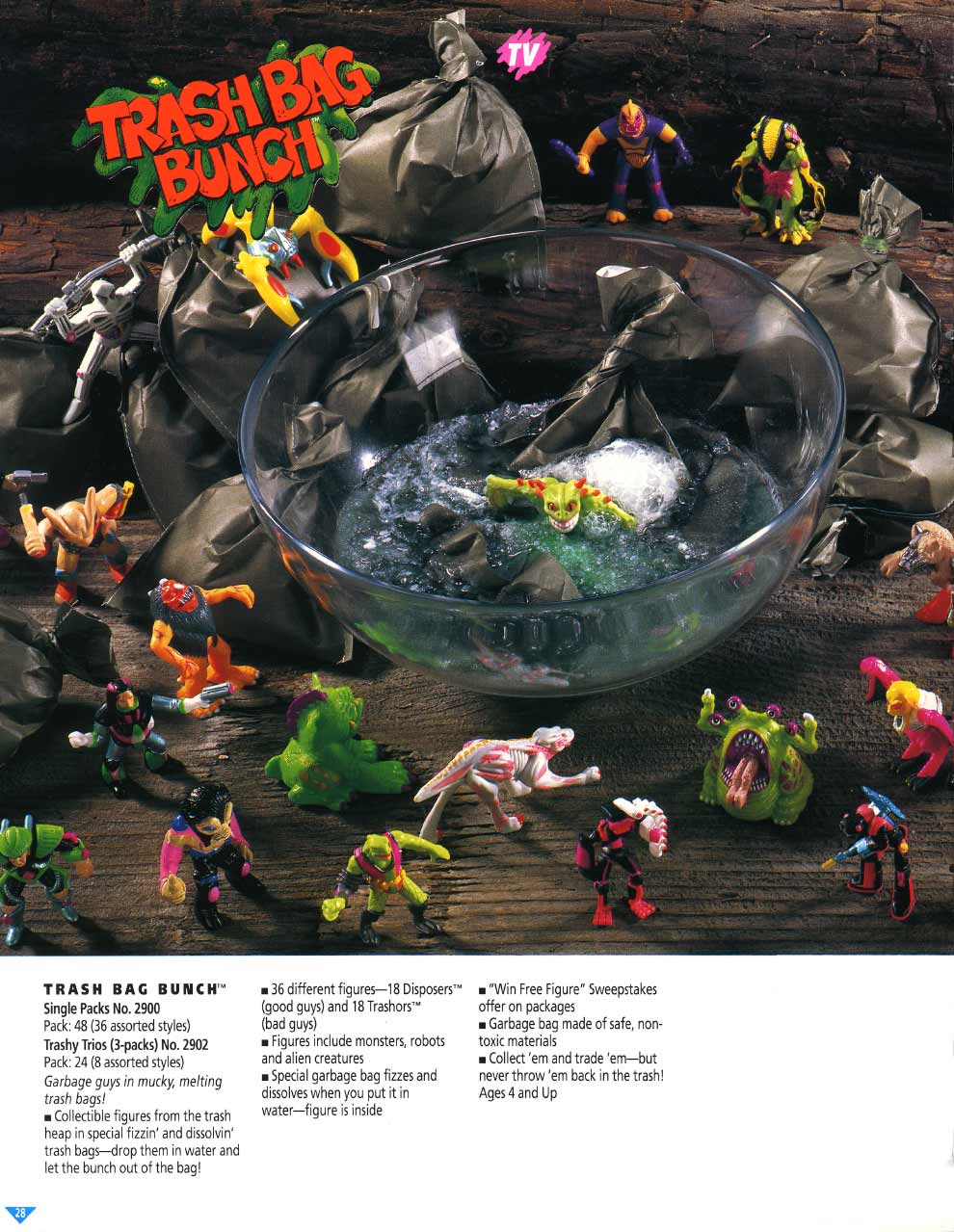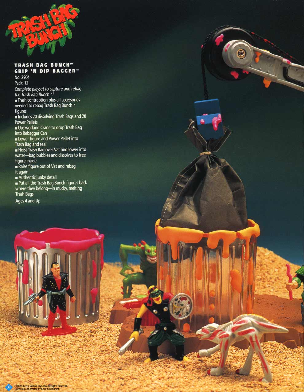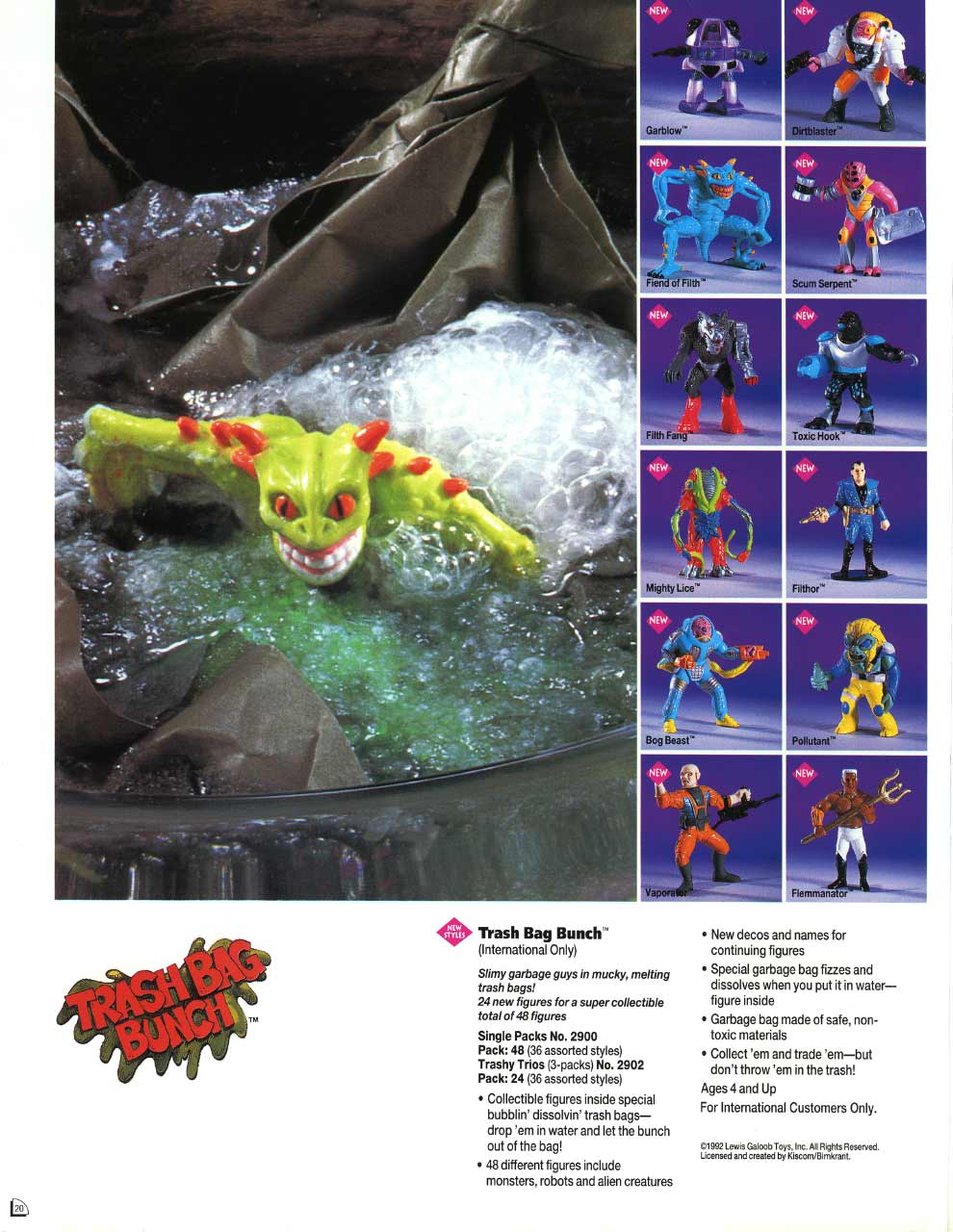 And thus, I forgot about the TRASH BAG BUNCH until last year, when I posted several videos on YouTube. Among them was Galoob’s Trash Bag commercial. To my surprise, it got more hits and comments than any of the others. My God! For the first time I realized that some folks actually took this product seriously, bought into the card-back story about “Trashors” and “Disposers”, and even collected them today. Then last week I happened to come across the 1992 and 1993 Galoob catalogues, in which I knew the Baby Face pages well, and discovered that the TRASH BAG BUNCH was in there too. Wow! There were all the figures, all their names and pictures, from both series one and two. There was even a "Grip 'n Dip" play set. Who Knew? That’s when I decided to put this stuff on line. For any TRASH BAG BUNCH collectors out there, this page is for you.