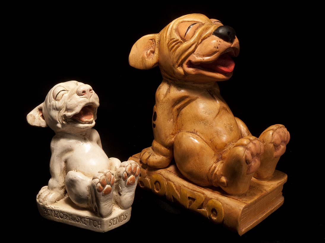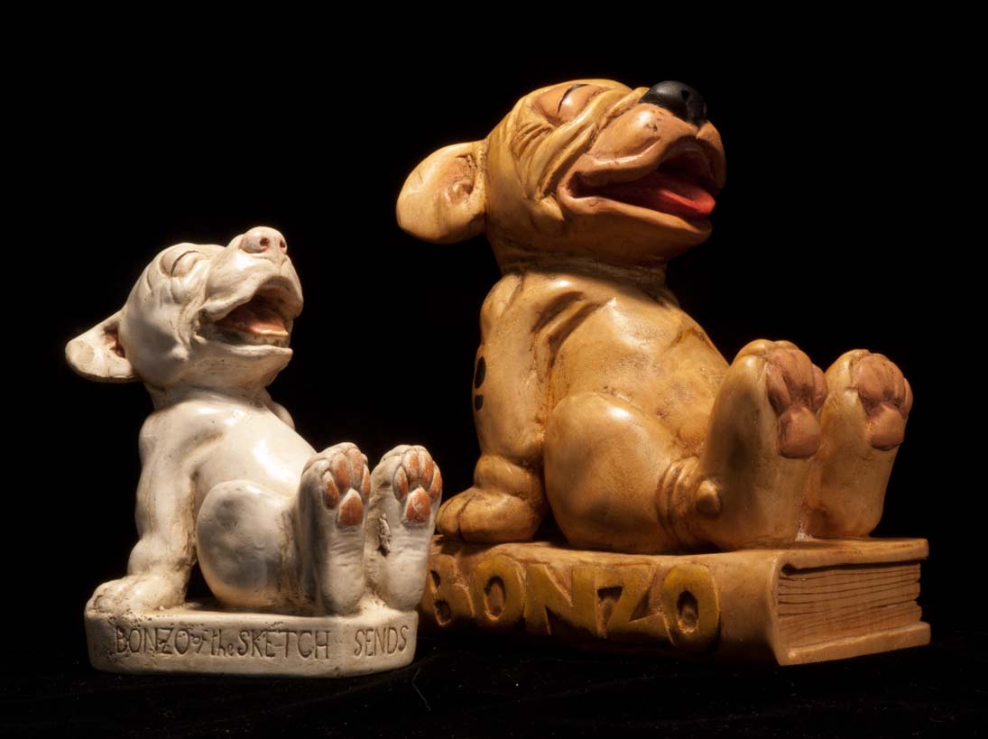 There are two Excellent Bonzo Websites, online, where you can feast your eyes on fabulous art and merchandise, and learn more than you ever thought you’d want to know about the fascinating life and times of Bonzo and his talented master George Studdy. Both sites present a wealth of art and information, and both are up to date, ongoing and alive: