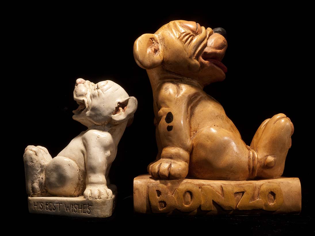 When I started collecting Bonzo, I had no idea who he was. To me, he was just a stray pup, who seemed to follow me home from flea markets and shows, because, like everything in this collection, I just liked the way he looked. And for the most part, I was the only one paying attention to him, early on, so naturally, many a homeless Bonzo found his way to me. It is ironic, that a character who is essentially Brittish, should find himself so thoroughly collected by someone in the USA. Over the years, I have corresponded with other Bonzo collectors, who are much more enthusiastic, immersed, and well-versed in the art of George Studdy than I will ever be. As might be expected, all of them, either come from, or live in England.